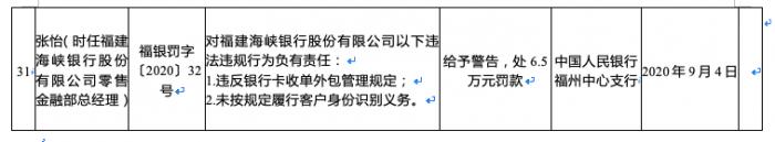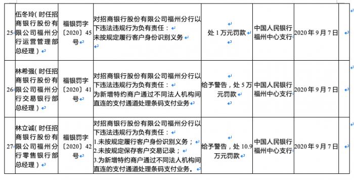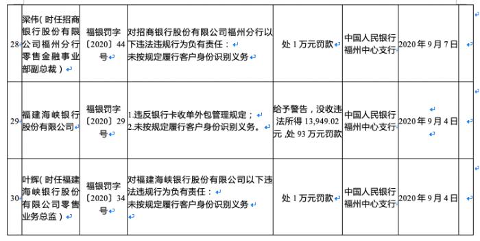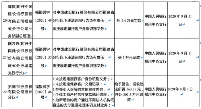此外,中信银行福州分行、建设银行福建省分行、招商银行福州分行、福建海峡银行等多家银行及其管理层,也收到了多份罚单。