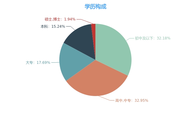 截至2019年12月31日,公司员工总人数为4325人,员工架构如下: