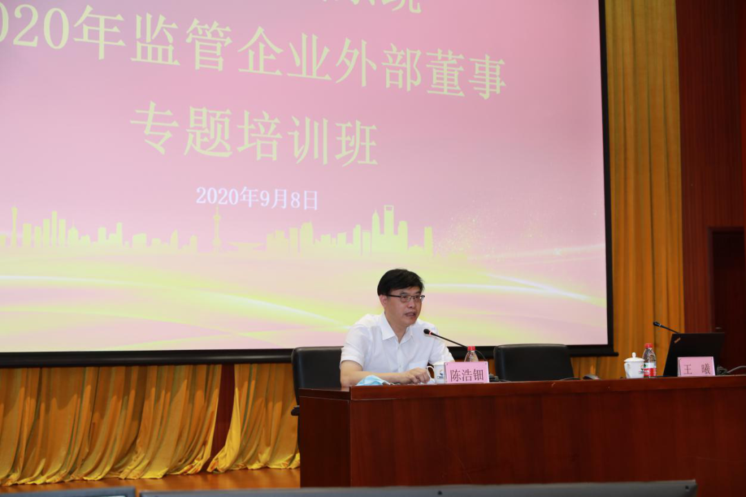 9月8日,市国资委举办广州市国资系统2020年监管企业外部董事培训会,市国资委党委书记、主任陈浩钿作开班动员,党委副书记、副主任覃海宁作总结讲话,各监管企业班子成员、外部董事、独立董事、董事会秘书、董办主任以及国资委相关处室人员约150余人参加培训。