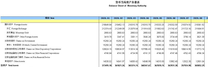 8月末央行外汇占款21.2万亿元人民币,环比减少38.3亿元