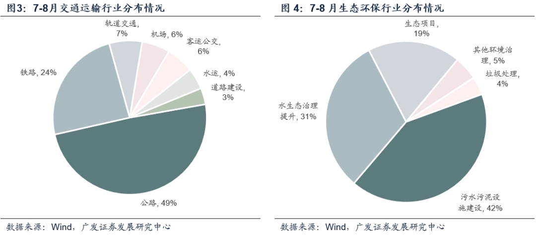 而7-8月交通运输类项目无论规模或占比,均出现相对明显的下滑趋势,主要来自轨道交通、铁路的拖累。