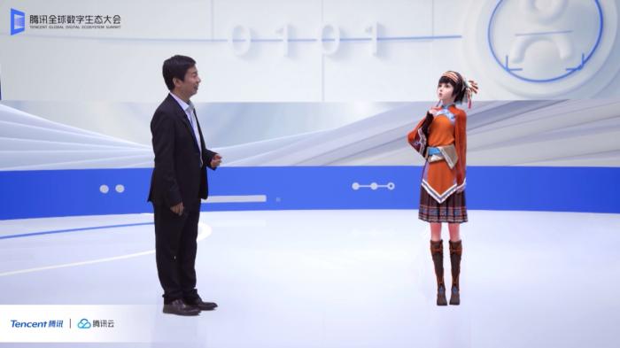 在腾讯全球数字生态大会进行演讲时,李学朝身边还有一位特殊的嘉宾,她是由腾讯云小微和腾讯AI Lab 联合打造的全新数字虚拟人——《镜双城》动画番剧中的“那笙”。