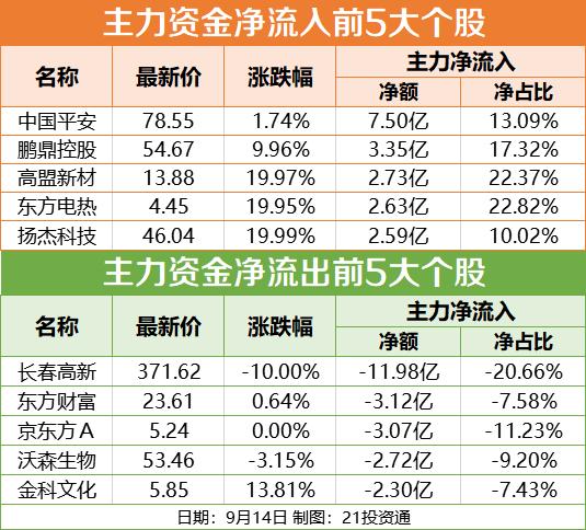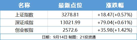 9月14日,三大指数集体收涨,其中创业板指表现较强,收盘涨幅超过1%。两市成交额7635.43亿元。第三代半导体板块飙升,板块涨幅逾9%,氮化镓、创业板低价股等集体大涨。