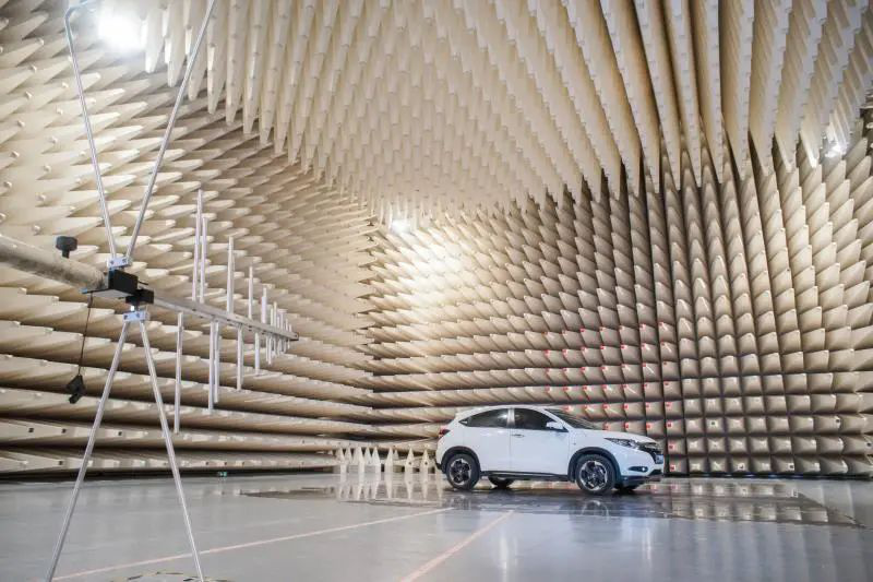 广电计量十米法电波暗室正在进行汽车整车电磁兼容检测