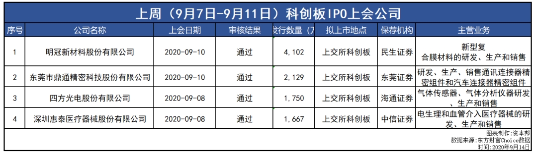 上周(9月7日-9月11日)关于IPO市场动态如下: