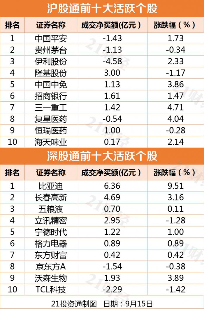 个股方面,北向资金净买入比亚迪(002594.SZ)6.36亿,长春高新(000661.SZ)净买入4.69亿,隆基股份(601012.SH)净买入3.00亿,立讯精密(002475.SZ)净买入2.95亿。