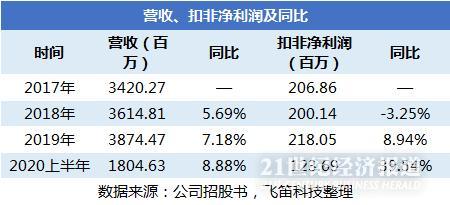 公司最近公司的招股书显示,2020年上半年,公司实现营业收入18.04亿元,同比增长8.88%,扣非净利润为1.24亿元,同比增长39.54%。