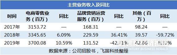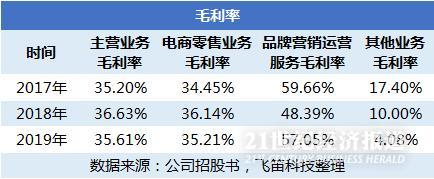 从毛利率来看。2017年至2019年,电商零售业务毛利率平均在35%左右,与主营业务毛利率相对应;品牌营销运营服务毛利率较高,均值约为55%;其他业务的毛利率较不稳定,均值约为10%。