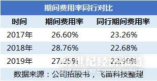 据公司招股书数据,丽人丽妆的期间费用率在报告期内均维持在27%左右的水平,而同行可比公司(跨境通、宝尊电商、壹网壹创和若羽臣)的期间费用率均值为23%左右,尽管丽人丽妆在2019年对期间费用进行了把控,但期间费用率依旧高于同行可比公司。