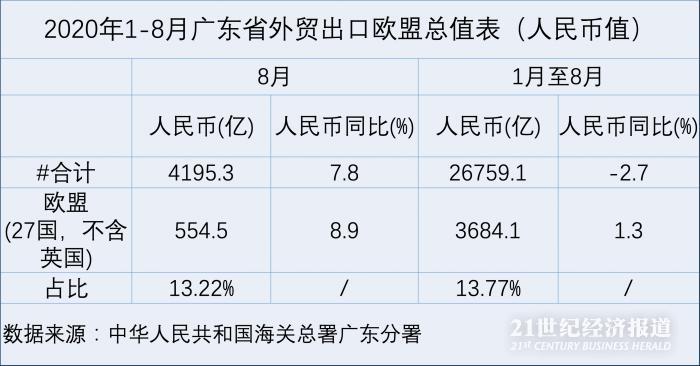 海关总署广东分署数据显示,欧盟亦是广东重要贸易伙伴。今年8月,广东对欧出口总值达554.5亿元人民币,同比增长8.9%,约占广东省8月出口总值的13.22%。进一步打开欧洲市场对广东乃至全国坚持扩大开放,全力稳住外贸基本盘的重要性不言而喻。