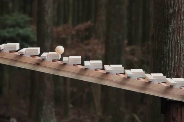 日本九州的一座森林当中,人们将木片按固定顺序排列,打造出一座琴键绵延的木琴,一颗小木球缓缓溜过琴键,敲击出来的,是巴赫第147号康塔塔(Cantata,Jesu, Joy of Man's Desiring)的旋律。木琴位于 Daisetsu Mori-no(日本北海道主要的园林展示区,游客们到这个森林里从自助售货机上买一个橡胶球以后就变成了一个乐队指挥,完成这个美妙的交响曲。