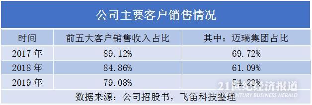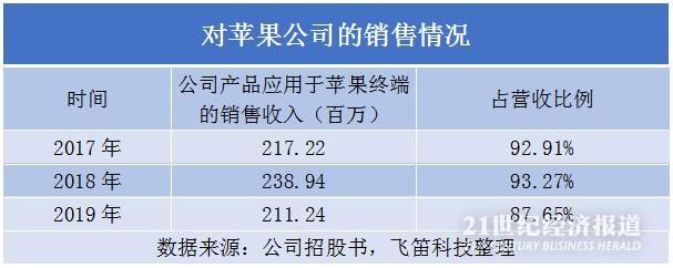 迈锐集团、领益智造等功能器件厂商,公司不与终端客户进行直接交易。报告期内,公司通过以上两种销售模式,将产品最终应用于苹果终端的销售收入分别为 2.17亿元、2.39亿元和2.11亿元,占公司营业收入的比例分别为 92.91%、93.27%和 87.65%,占比较高。世华科技在招股书中提示,公司的产品销售在客观上形成了对苹果公司的依赖,并在可预见的将来仍将持续。