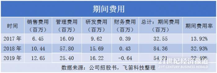 若扣除 2018 年股份支付计入管理费用金额 3063 万元,公司2018年的期间费用合计为5373万元,占营收比例20.97%,公司的期间费用总额和占比仍呈上升趋势,由此导致公司的扣非净利润在2019年呈现更大幅度下降。
