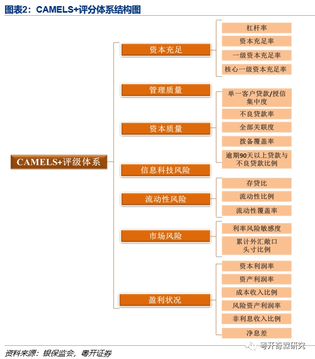 而“CAMELS+”是一个分类体系,包括7大类定性与定量指标,目的是给监管当局提供打分评级体系,评估各个银行对应的风险等级,以便分类采取不同的监管措施,制定不同的监管规划,比如每个银行现场检查的频率应该是多少,每个银行业务开展范围该怎么限定等。
