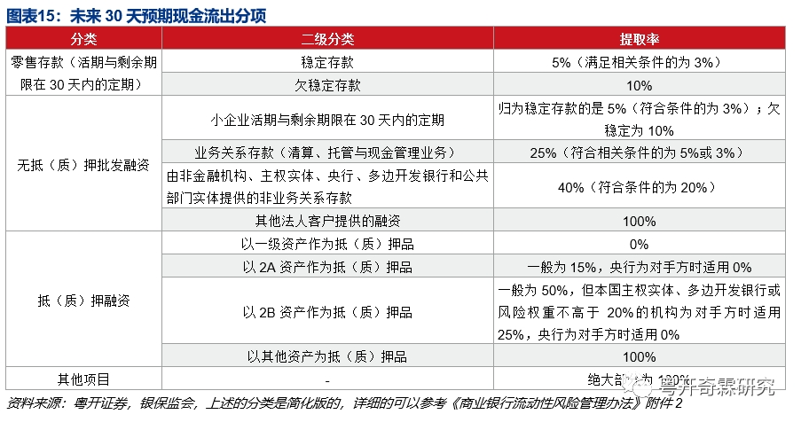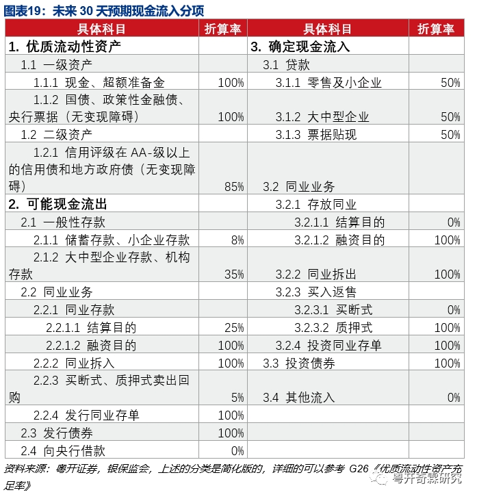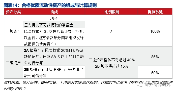 计算公式:流动性覆盖率=合格优质流动性资产÷未来30天的现金净流出