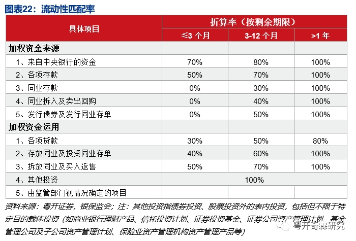 流动性这一大项主要包括流动性覆盖率(LCR)、净稳定资金比例与遵守准备金制度情况三项。其中流动性覆盖率(LCR)、净稳定资金比例的监管考核要求与标准与银监体系中的基本一致,在此不再赘述。
