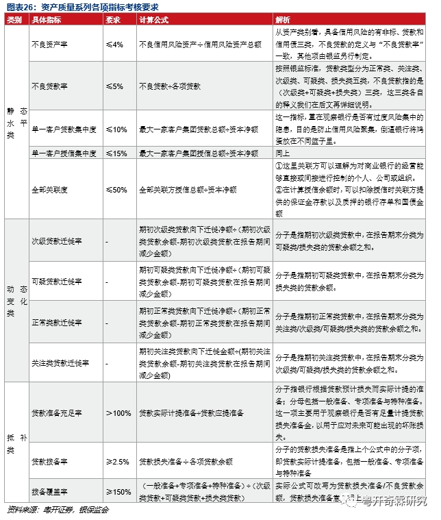 同时也可以看到MPA里也很多指标与上述我们所说的银保监会监管体系是一样的,比如杠杆率、流动性覆盖率、不良贷款率、拨备覆盖率,对此我们就不再赘述。