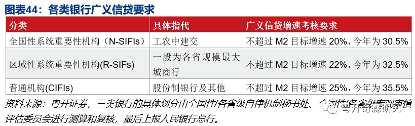 当前对广义信贷的最高增速主要有两大限制。一是资产负债项直接给出的,要求N-SIFIs、R-SIFs和CIFIs分别不超过M2目标增速20个、22个和25个百分点。