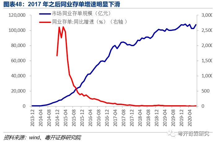 我们也能够看到在2017年金融严监管以及同业存单被纳入监管体系后,同业存单的增明显回落。