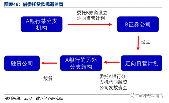 比如A银行先出资委托B券商设立定向资管计划,定向资管计划设立后,再由资管计划委托A银行另外的分行向融资公司放款。