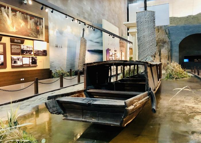 △渡江战役纪念馆内的渡船