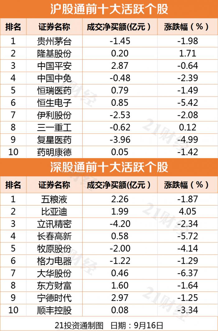 个股方面,北向资金净买入宁德时代(300750.SZ)、中国平安(601318.SH)、五粮液(000858.SZ)、比亚迪(002594.SZ)居前。