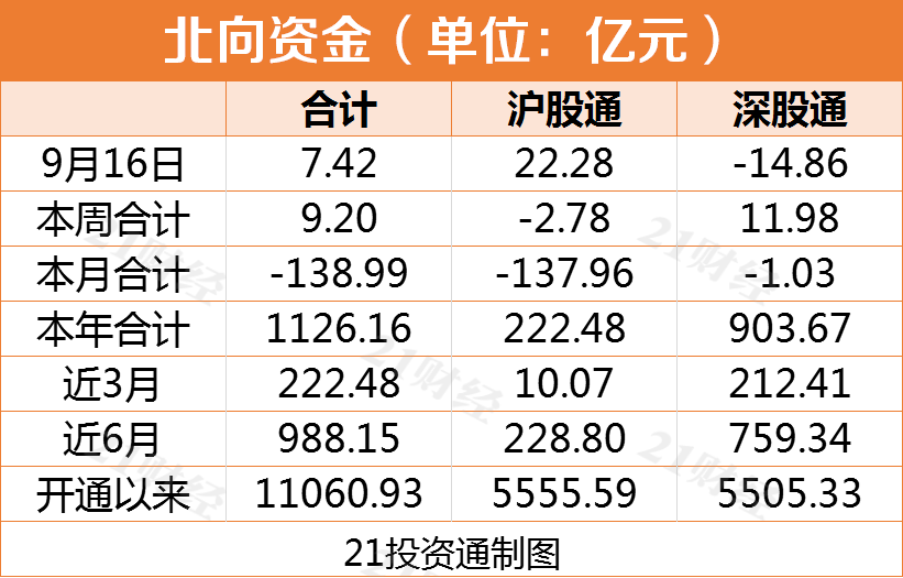 北向资金净买入7.42亿元,较当日低点回流了近33亿元。沪深股通资金再度分化,沪股通净买入22.28亿元,深股通净卖出14.86亿元。