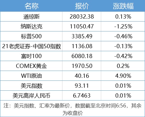 美股三大指数收盘涨跌不一,道指收涨0.13%,纳指跌1.25%,标普500指数终止日线三连涨。特斯拉跌近2%,Facebook跌超3%,苹果跌近3%;金山云涨超5%,跟谁学涨超3%;雪佛龙涨近3%,波音涨2.5%。