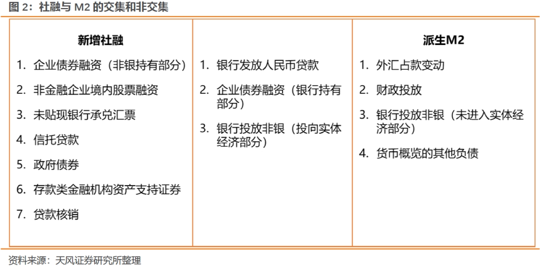 二者的交集部分,也是对新增社融和派生M2贡献最大的部分“银行向实体经济发放的人民币贷款”(社融口径信贷)的存量增速已经自5-8月连续4个月保持在13.3%不变,因此非交集部分的差异化走势比较容易造成二者走势的背离。就当前而言,主要是三方面因素。