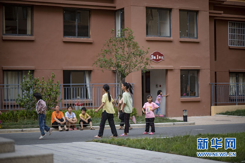 8月12日,云南省镇雄县鲁家院子易地扶贫搬迁安置点的孩子们在院里玩耍。新华社记者江文耀摄