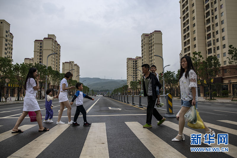 8月8日,当地百姓走在云南省昭通靖安新区的街道上。新华社记者江文耀摄