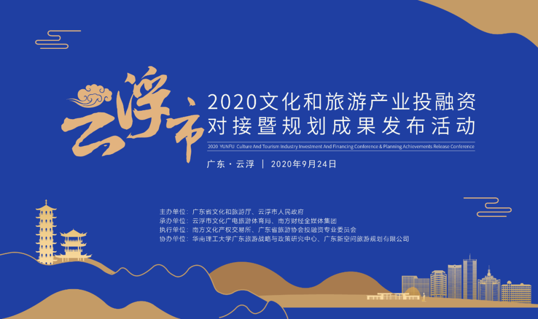 由广东省文化和旅游厅、云浮市人民政府主办,云浮市文化广电旅游体育局、南方财经全媒体集团承办,南方文化产权交易所、广东省旅游协会投融资专业委员会执行的2020云浮市文化和旅游产业投融资对接暨规划成果发布活动(以下简称“云浮产融对接活动”)将于9月24日在云浮市迎宾馆举办。