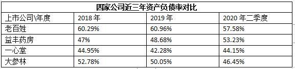 近三年,老百姓的资产负债率保持在57%以上。同期,益丰药房的资产负债率不到54%,一心堂的资产负债率不到45%,大参林的资产负债率不到53%。数据告诉大家,老百姓的资产负债率均高于同行可比公司。