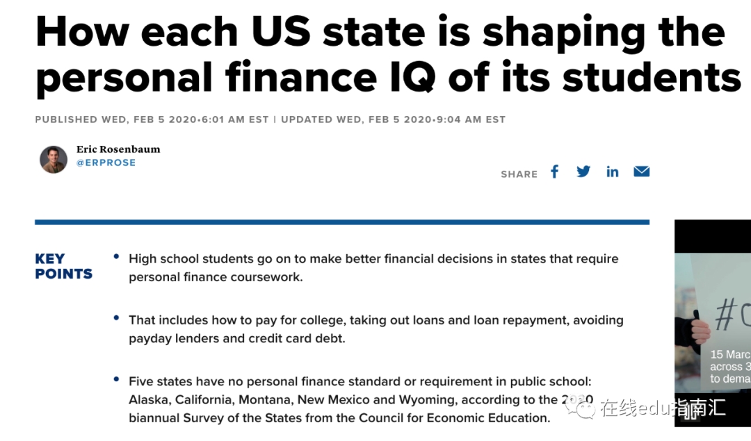 后来,美国仍在不断加强“理财、金融”的教学:不限于大学阶段,还有k12学习阶段,加入理财经济学相关课程。2015年,美国50个州中有17个要求高中生在毕业前学习个人理财。目前仅剩5个州没有覆盖理财教育(美国有50个州+1个特区)。这是由美国相关政府、学术界与协会推动层面的进展。