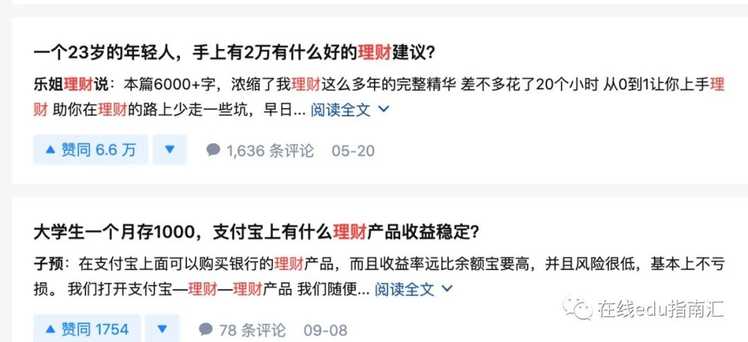 知乎上,搜索“理财”关键词,top2的问题和答案,是关于“手上有多少钱,如何理财”。评论数过千、点赞认同某个解答的数量达6.6万。