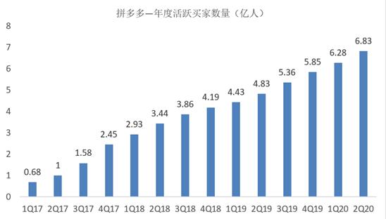 根据各家电商二季度财报,拼多多的年度活跃买家人数在二季度增长约 5500 万人,达到 6.83 亿人,越来越逼近龙头阿里巴巴,但是也意味着距离行业的天花板越来越近,增速在放缓。由于增速不达预期,在不久前二季度财报发布当天,拼多多股价单日跌幅达到 13%。