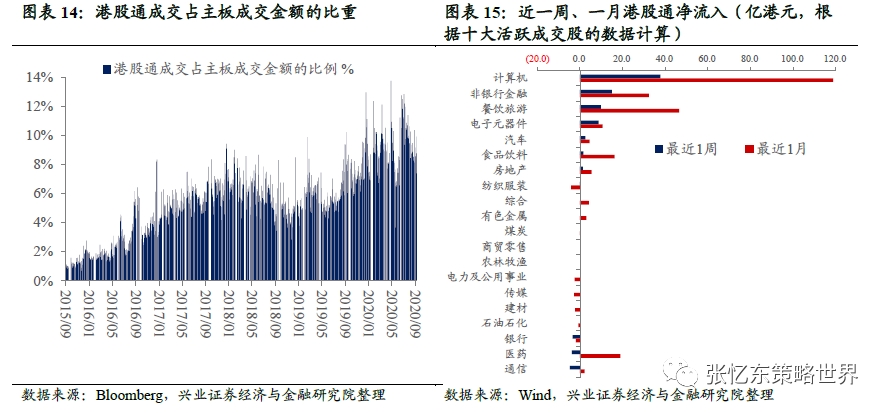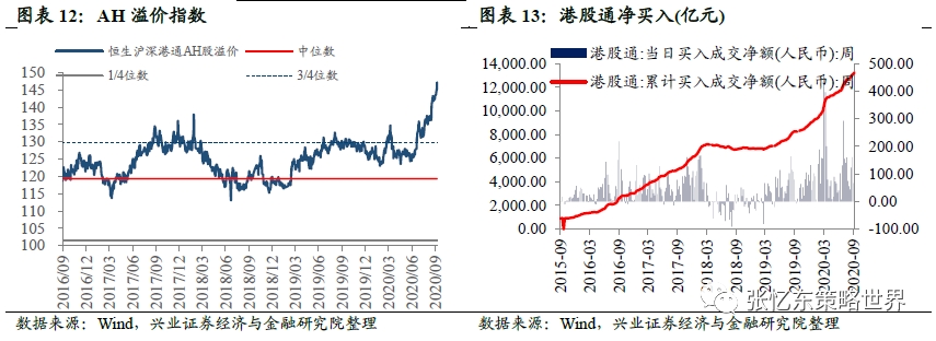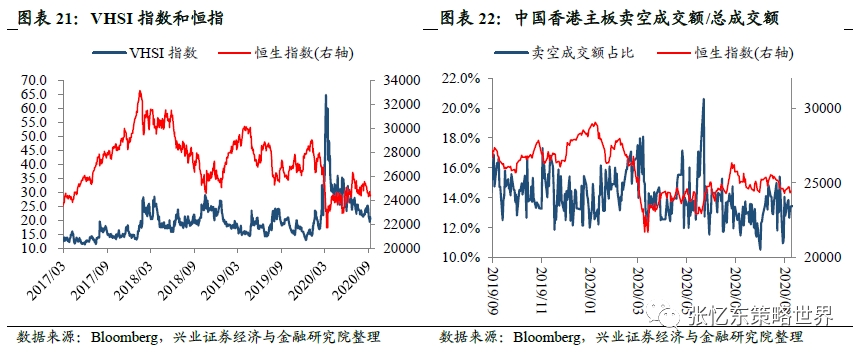 投资者情绪。截至9月18日,恒生波指为20.4,低于上周五的21.4,处于2012年以来的66%分位数水平;主板周平均卖空成交比为13.3%,高于上周的12.3%。