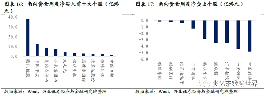 南向资金周度净买入前十大个股为腾讯控股、中国平安、美团点评-W、小米集团-W、九毛九、信达生物、思摩尔国际、比亚迪股份、恒腾网络、中国飞鹤;净卖出个股为微盟集团、微创医疗、比亚迪电子、中芯国际、药明生物、海底捞、汇丰控股、平安好医生、中国移动。