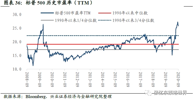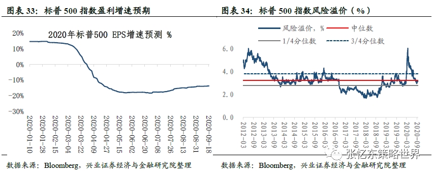 风险溢价水平和盈利预期。截至9月18日,标普500指数2020年预期EPS增速为-13.9%;本周五,股权风险溢价为3.2%,与上周持平,处于2010年11月以来的中位数附近。(注:股权风险溢价=标普500市盈率倒数-十年期国债收益)。