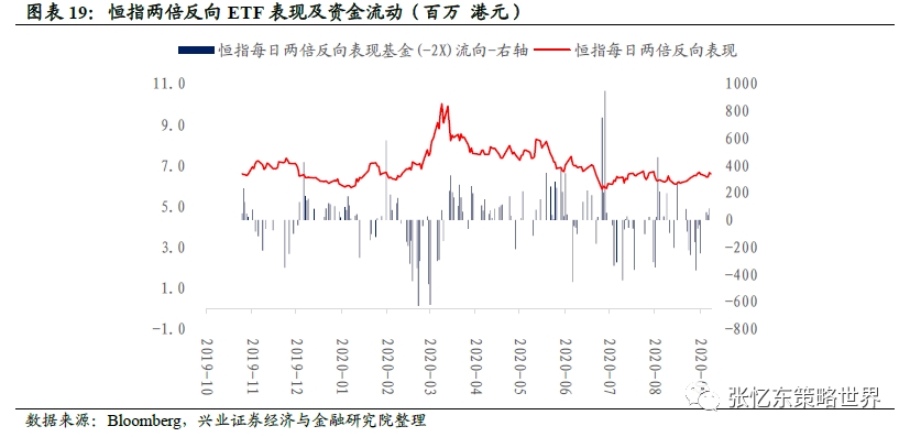 (注:FI二南方恒指基金,即恒指两倍反向ETF,提供恒生指数单日表现的相反的2倍回报,例如恒指一日跌1%,该两倍反向ETF便实现2%的升幅,反之亦然。)