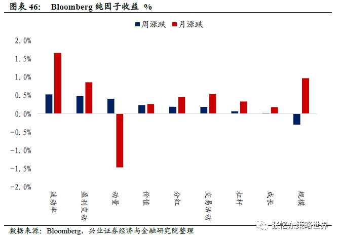 (注:采用罗素3000指数彭博纯因子收益来刻画提纯后的主流风险因子表现,纯因子即每单个因子收益与其余因子收益正交。当因子收益为正,表明因子值越高,暴露该因子风格的股票表现越好。比如若波动率因子收益为正,表明高波动率股票表现优于低波动率股票)。