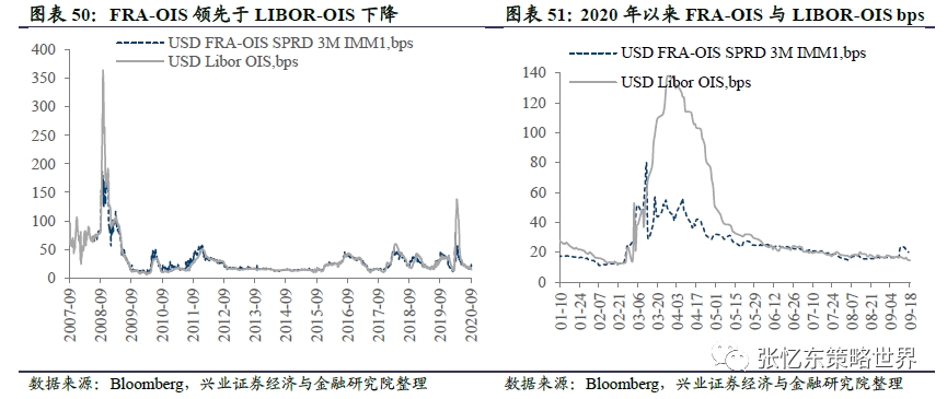 截至9月18日,相较于上周五,FRA-OIS上升3.4bp至20.0bps,LIBOR-OIS下降2.3bp至14.7bps。