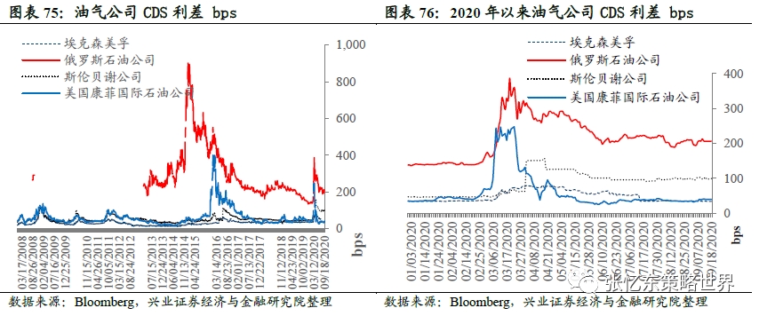 油气公司CDS利差:相较于上周五,埃克森美孚利差下降0.2bp至34.5bps;俄罗斯石油公司CDS与上周持平为206.6bps; 斯伦贝谢公司CDS上升0.9bp至99.5bps; 美国康菲CDS下降0.7bp至40.3bps。
