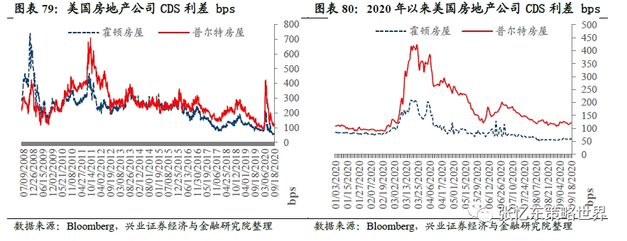 美国房地产公司CDS利差:相较于上周五,本周霍顿房屋公司CDS利差下降0.8bp至58.7bps,普尔特房屋公司CDS利差下降1.0bp至121.1bps。