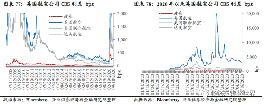 美国航空公司CDS利差:相较于上周五,本周波音公司上升0.4bp至297.8bps; 美国航空下降869.2bp至2918.6bps;达美航空下降26.8bp至636.9bps;美国联合航空下降49.9bp至868.8bps。