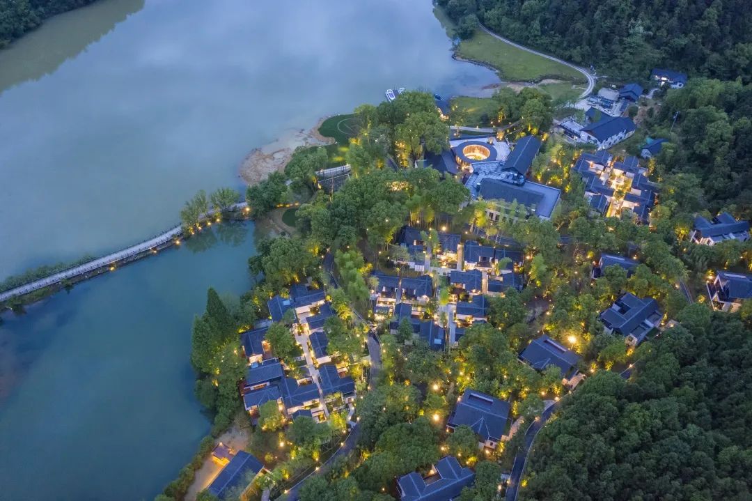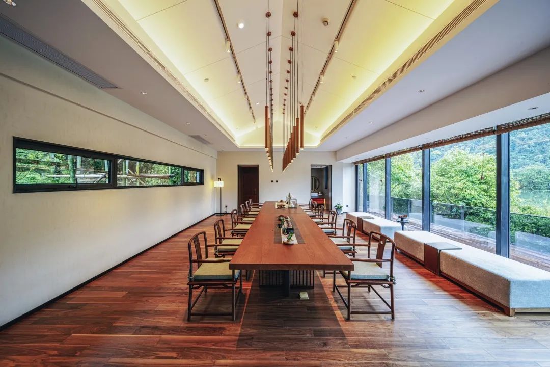 山林之中还有湖上茶室。酒足饭饱之际,步入茶室,泡上一壶新叶,静静感受茶香在室内弥漫,一时之间,时间无扰,空间无忧,你仿佛化身为千年前的春江渔翁,日出日落,听雨观岚,可觉心灵有余地,生活有余味,感情有余温,声外有余韵,方达“驰於方外,休乎宇内”。