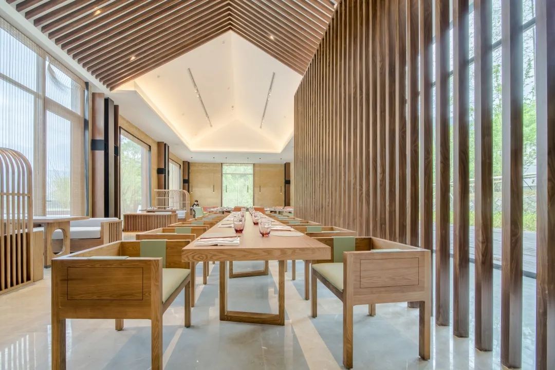 餐厅全天候提供餐饮服务,还设有3个高端雅致包厢。若是想感受依山傍水的自然之趣,你可以选择在沙洲旁的餐厅就餐,一边远望胥溪绿波,一边品尝以当地方外精致特色菜与杭帮菜为主的菜品,让你的舌尖充斥着地道的江南风味。