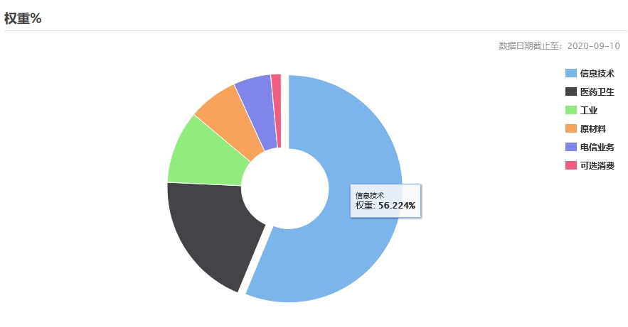 此外,据上交所11日当天发布的当前科创板50指数成分股列表,从行业分布来看,以数量计算,信息技术股票数目为24只,居行业之首,医药卫生、工业则分居二、三名;以权重计算,信息技术行业所占权重更是占到了56%。
