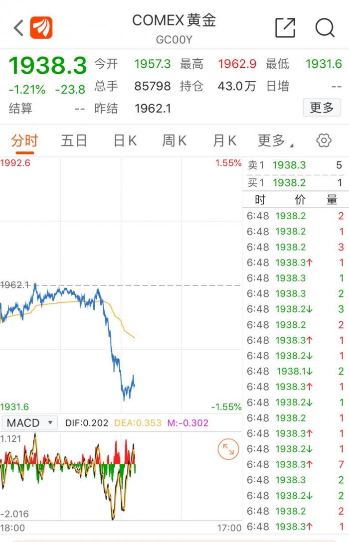 黄金、油价盘中跳水,金价跌破1940美元/盎司,油价回落至40美元/桶;美元指数表现强势,盘中大幅上扬。