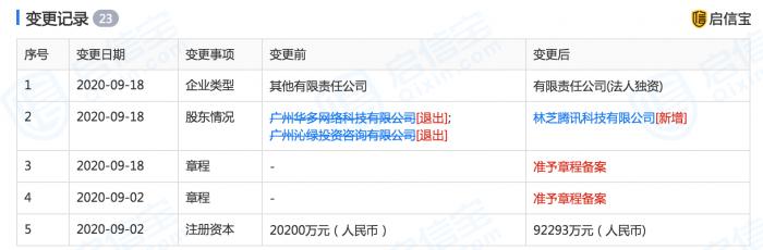 近日,据启信宝数据显示,广州虎牙信息科技有限公司发生工商变更,变更项为股东、企业类型。其中,原股东广州华多网络科技有限公司、广州沁绿投资咨询有限公司退出,新增股东为林芝腾讯科技有限公司,持股比例为100%。同时,企业类型由其他有限责任公司变更为有限责任公司(法人独资)。